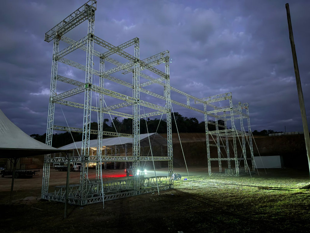 As estruturas em treliça de alumínio são práticas, resistentes e adaptáveis a diferentes formatos e tamanhos de eventos.